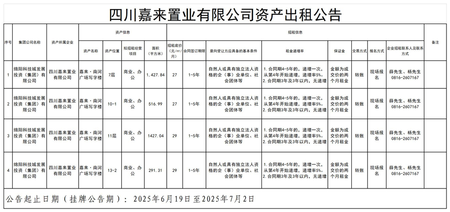 四川嘉來(lái)置業(yè)有限公司資產(chǎn)出租
