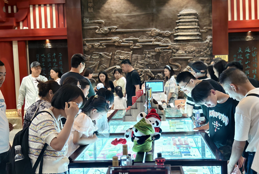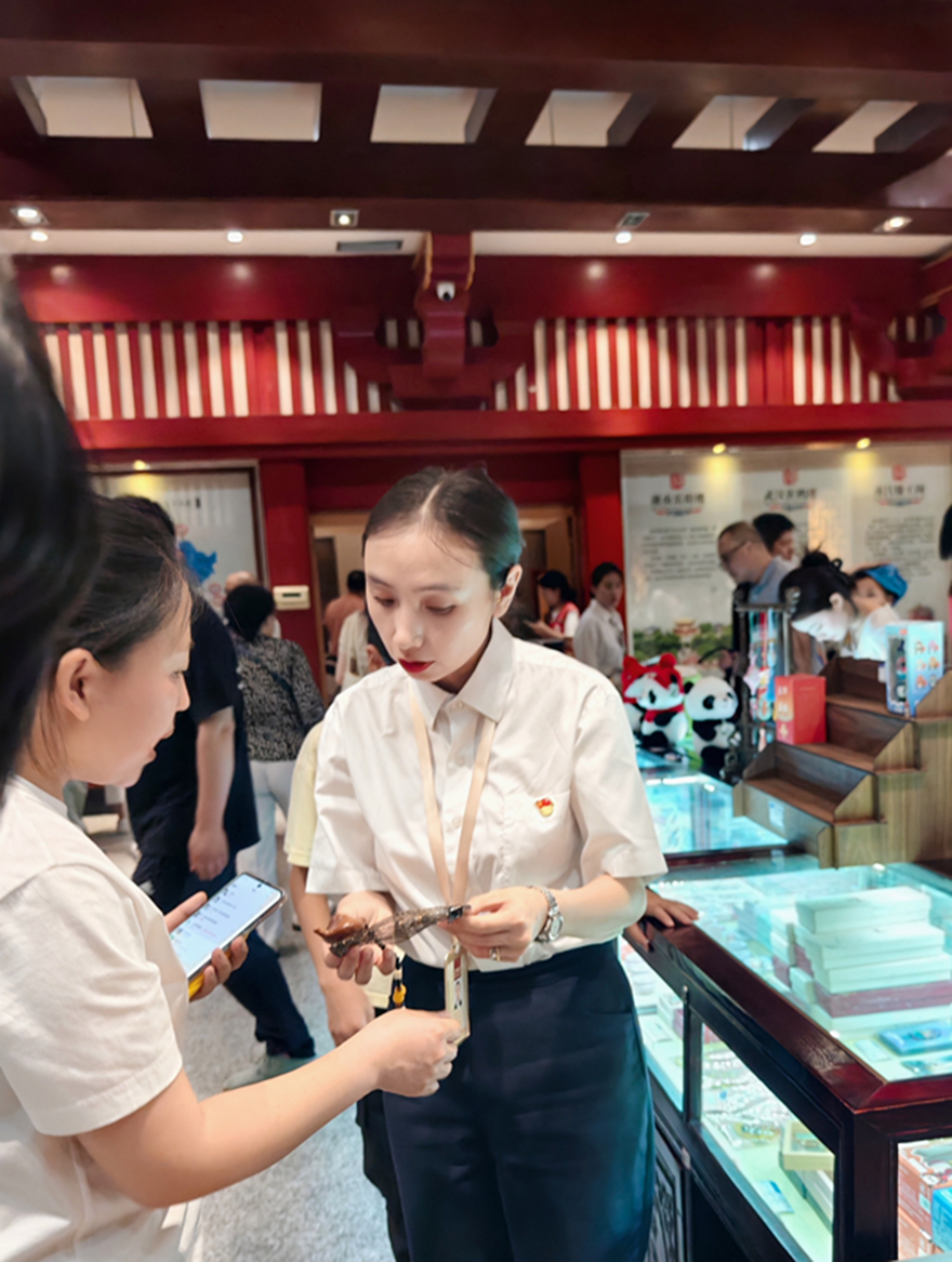 “五一”期間,景區(qū)在龜山打造“非遺工坊”,推出“漆扇制作—草編體驗(yàn)—詩詞題寫—場景打卡”一體化體驗(yàn)鏈,可參與、可帶走、可傳播,突破“靜態(tài)展示”傳統(tǒng)模式,通過“活態(tài)傳承+互動(dòng)賦能”推動(dòng)非遺文化創(chuàng)造性轉(zhuǎn)化,每天吸引逾千人次游客參與。